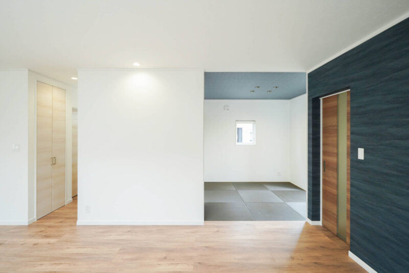 隣接する畳コーナーは、縁なし畳と落ち着いた色の天井が相性よく、ライフスタイルに合わせて、多様に活用いただけます。