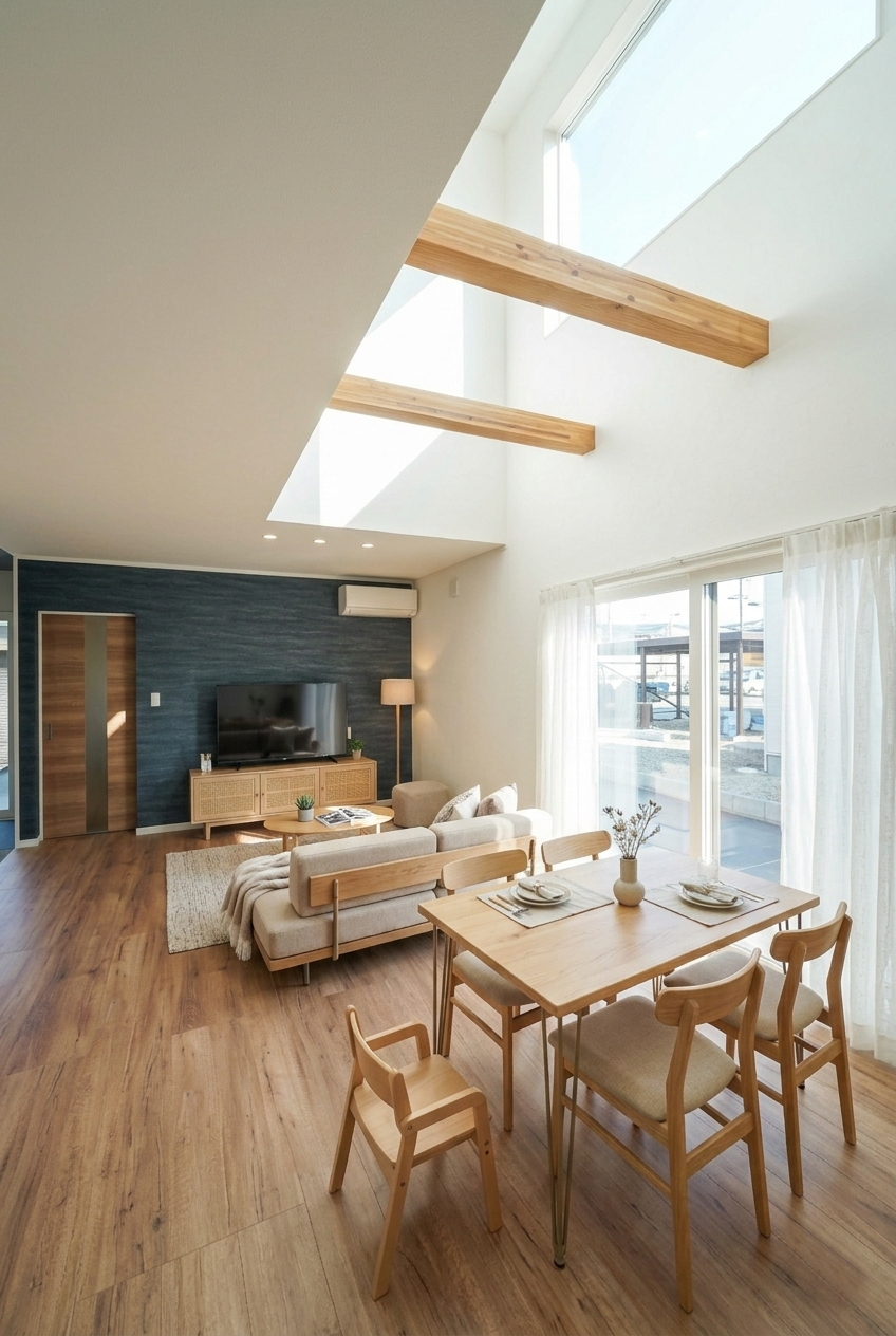 梁を見せたデザインが空間のアクセントになり、木の温もりをより身近に感じられます。
